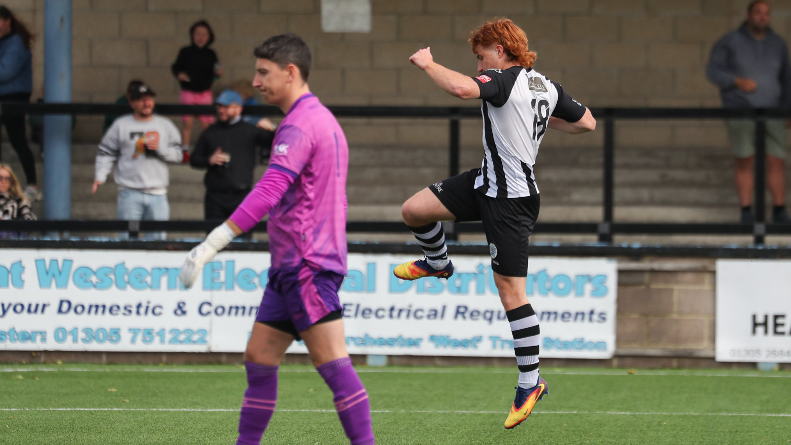 Daws, who proved a constant threat to the Bideford defence all afternoon, started the move with an outside of the boot pass to Parker down the Dorchester left. The Magpies number nine advanced to the edge of the box, returning the ball to an onrushing Daws, who swiftly squared for Smith to finish from close range.